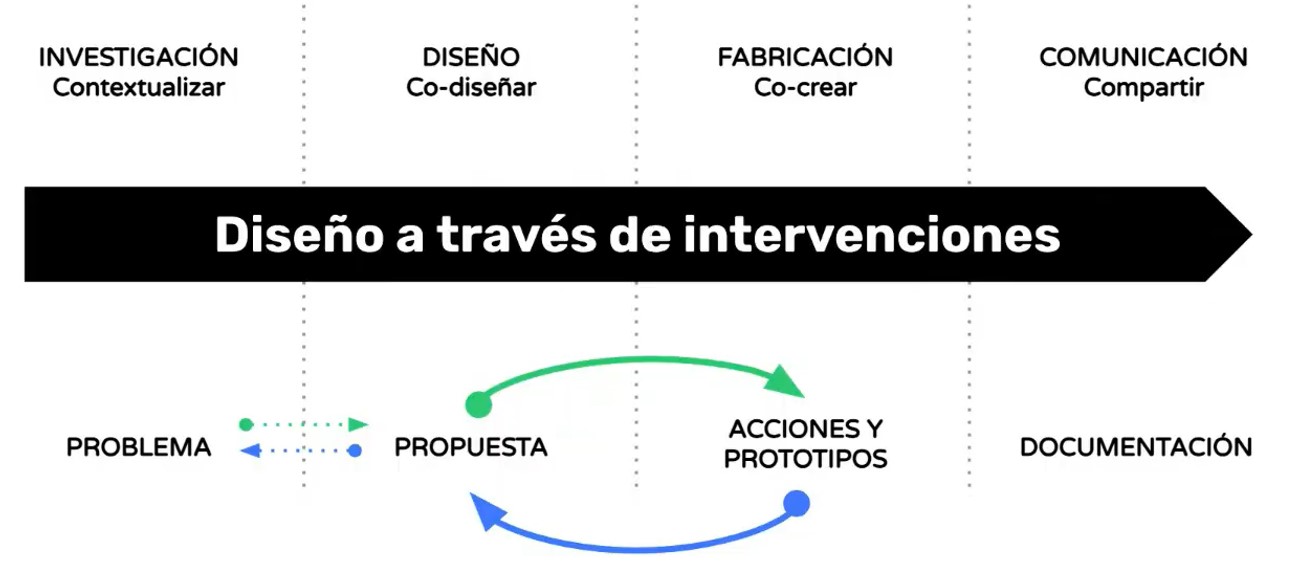 Luego pasamos a definir las intervenciones que podemos implementar para definir nuestro proyecto. Estas son acciones de diseño situadas en un contexto real que involucra a la comunidad objeto de estudio.