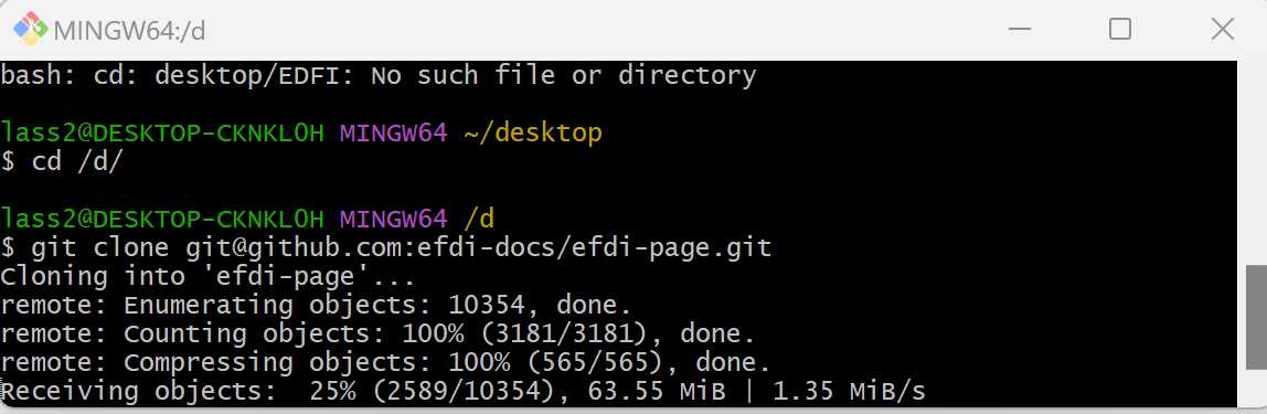 7 Clonar el repositorio a mi PC. Crar carpeta en mu PC y en gitbash clonar mi repositorio utilizando la clave SSH que aparece en el Github de EDFI