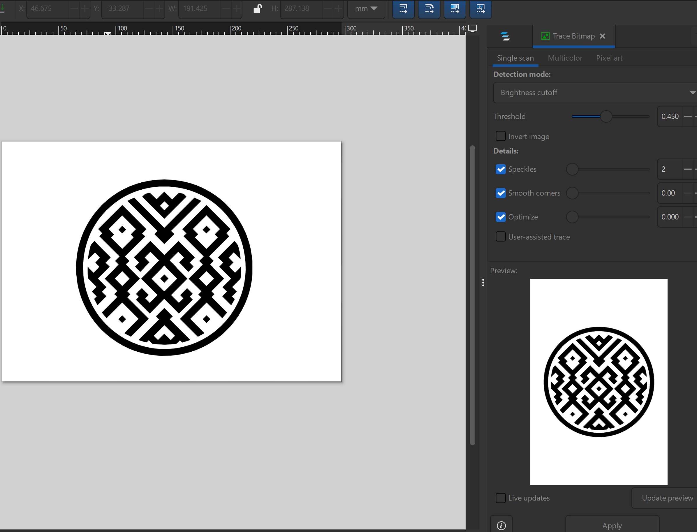 Para el logo tomé como referencia geometría de la comunidad amazónica Shipiba. Y utilicé Inskape para vectorizarlo. Luego lo grabé en formato SVG.